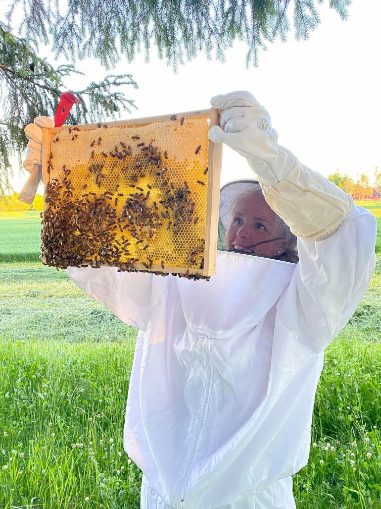 I 2021 ble jeg birøkter og har tilført gården to bikuber som produserer honning og er med på å skape et enda bedre miljø på gården. Det har vært en reise å bli kjent i bigården med disse arbeidsomme biene og deres samfunn. Sluttproduktet som er den fantastiske honningen blir nøye håndtert, og hos meg håndslynget. Den røres deretter hver dag fram til honningen er ferdig, dette kan ta alt fra 3-7 uker etter slynging. Jeg poder ikke eller tilsetter honningen noe! Smak og konsistens kan varierer med hva de har å trekke på i sesong. På gården har jeg lagt til rette for blomsterstriper i åker og i veikanter og skoglunner, det er også mye bringebær og hvitkløver som gir fløyelsmyk honning med unik smak