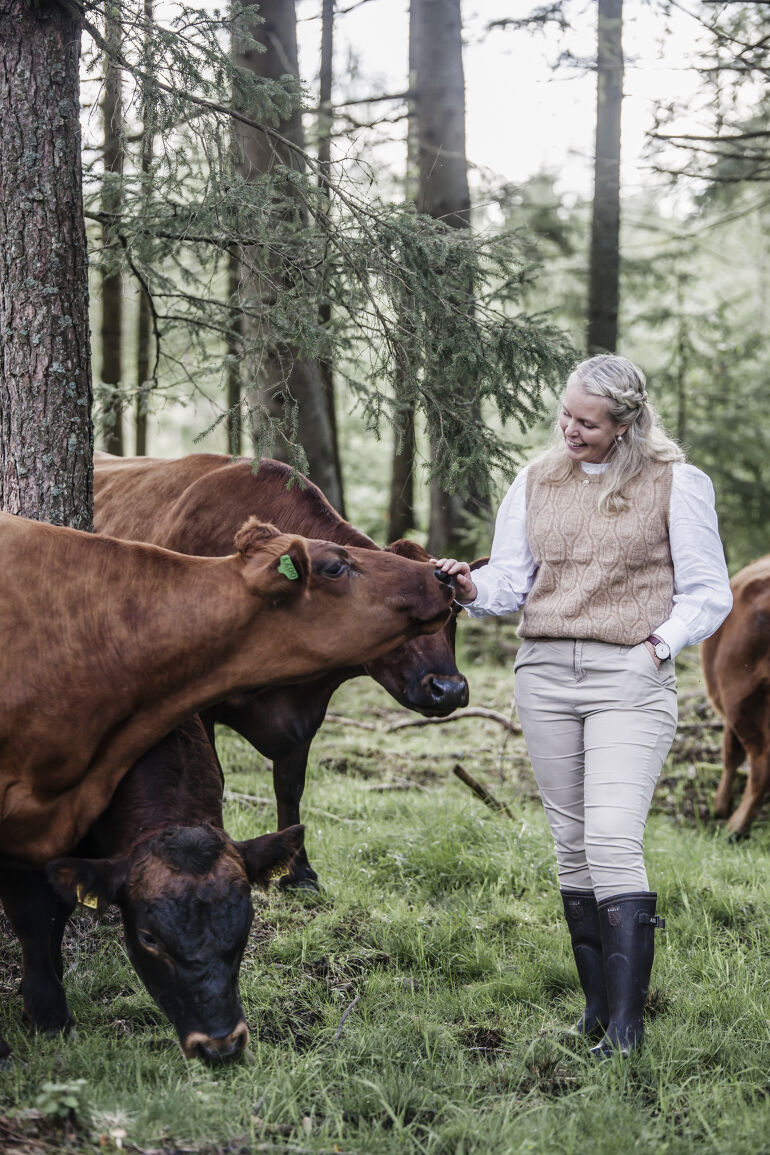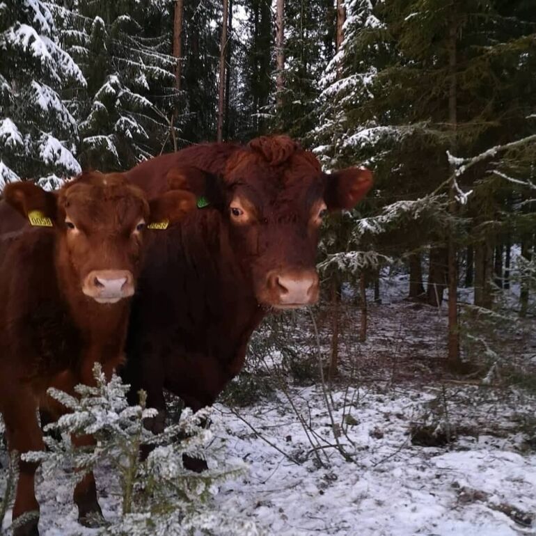 Det er en besetning på ca 15mordyr som beiter og livnærer seg på gården.De går på løsdrift som gjør at de kan gå ut og inn hele året. Alt av fòr blir produsert på gården og og kuene har også tilgang på beiter og skogområder som de elsker å utforske. For meg handler god dyrevelferd om å la dyra få være mest mulig i sitt rette element med mye utegang,flokktilhørighet og godt tilsyn. Jeg renoverte låven i 2021 for å gi bedre plass til dyra og at de skal ha det best mulig. jeg håndmøkker rundt de hver dag så de skal holde seg rene og ha en god og tørr liggeplass. Alle dyra har en tørr uteplass å være på hele året og med ekstra tilsyn føler jeg at jeg klarer å gi de et så godt liv som mulig her på Melleby Gård